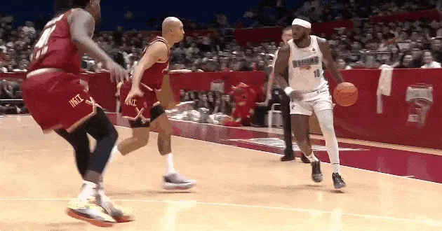 第一节比赛中,麦基顺下接球起飞举火烧天完成单手劈扣,上场4分钟得到7分。